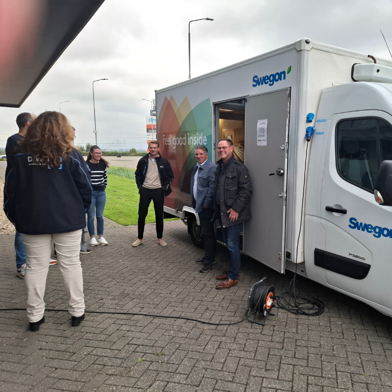 De mobiele showroom is uitgerust met (werkende) Swegon producten, waaronder WTW-unit: Swegon Gold.
